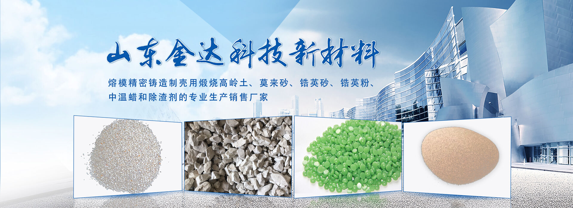 山东金达科技新材料有限公司,成立于二零零八年十一月,注册资本500万元,占地58333平方米。位于省道S319和S228交汇处,胜利油田纯梁采油厂腹地,是集精密铸造材料科研、开发、生产、销售、服务、旧蜡回收净化处理于一体的企业,公司主要产品有熔模精密铸造制壳用煅烧高岭土、莫来砂、莫来粉、锆英砂、锆英粉、航空航天填充型蜡、非填充型蜡、粘结剂硅溶胶、机械手专用蜡等,可根据不同的产品定制不同的锆砂锆粉、中温蜡、旧蜡回收净化处理等。我公司属国家宏观调控倡导发展扶持的原料进口、加工、应用为一体的朝阳行业,拥有一支高素质的科研队伍,保证了产品始终具有稳定的高品质。多年来,经过公司技术人员的努力,综合了国内外同行业技术,我公司安装了国内的吸尘、磁选设备,使生产工艺达到了国内标准水平,日产量达100吨。化验人员攻坚克难,破解了很多在熔模精密铸造制壳中不稳定性的难题,使我公司产品耐火度高,膨胀系数小,热震稳定性和高温下的化学稳定性都满足了客户的要求。公司产品畅销全国各地,部分产品远销东南亚、欧洲的部分国家和地区,深受国内外顾客的青睐。